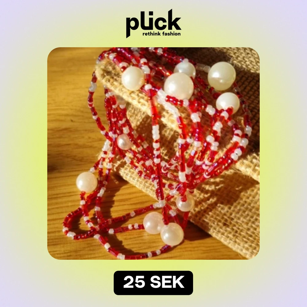 Mix acrylic white pearls and red glass beads, in a long fashion necklace. Long strand of mix beads and pearls that can signify your uniqueness and express yourself in style. Handmade/Handcrafted. 3way fashion accessory necklace,bracelet and anklet