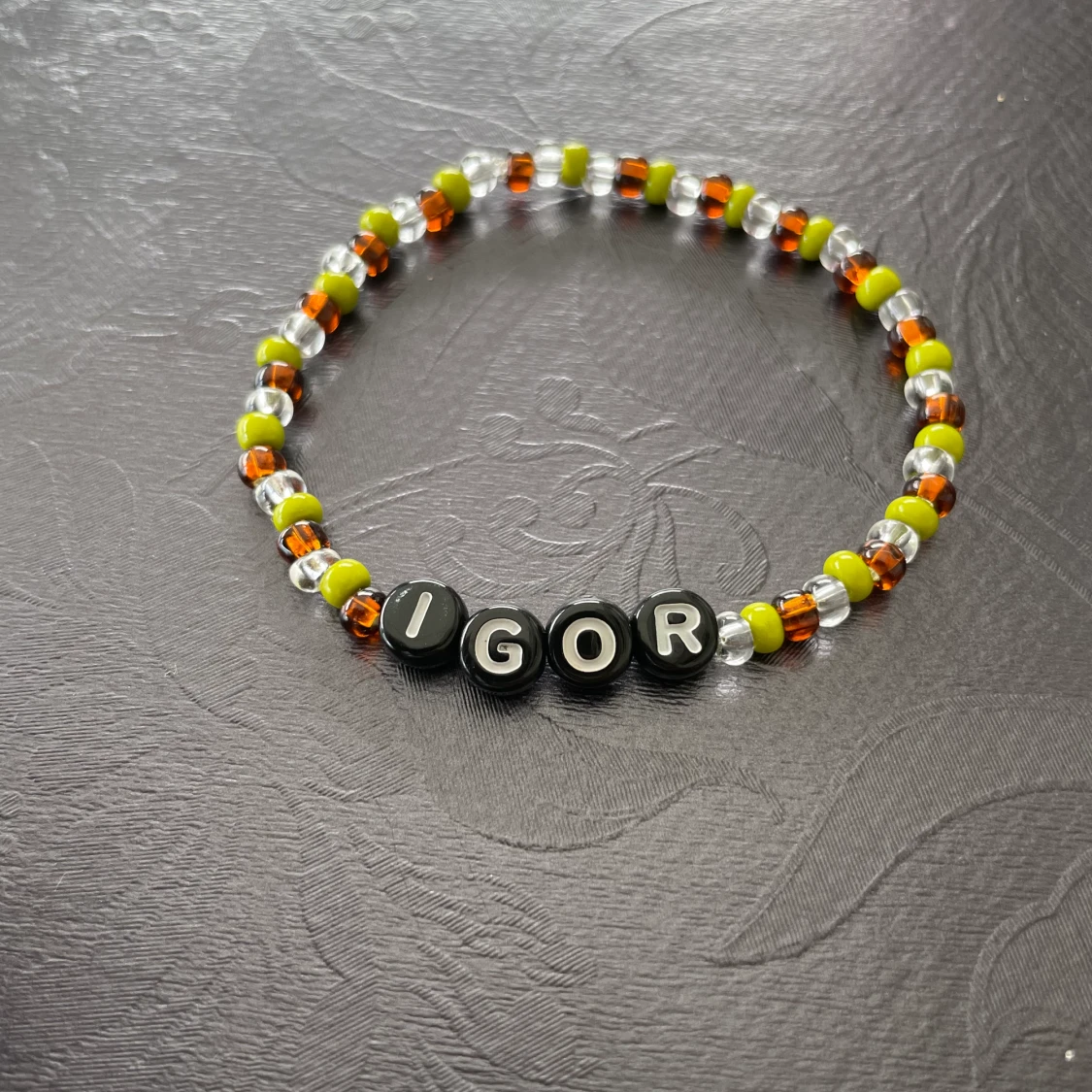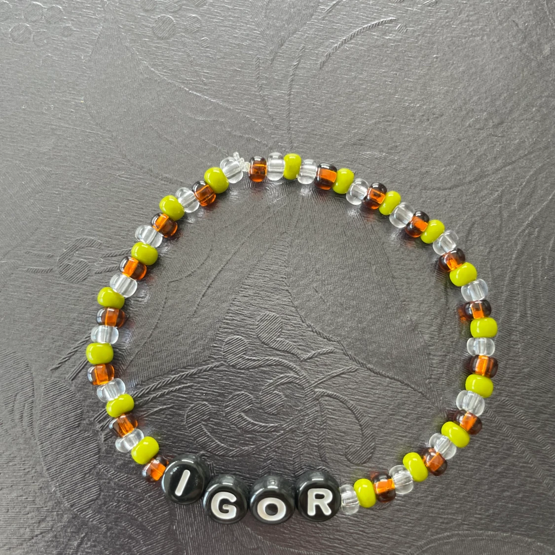 Egenpårlat armband med text💚🤎 kunden står för fraktkostnaden.