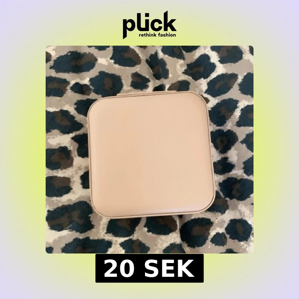Praktiskt beige smyckeskrin med flera fack för organisering av smycken. Inkluderar plats för ringar och små krokar för halsband eller armband. Perfekt för att hålla ordning på dina smycken hemma eller på resan.