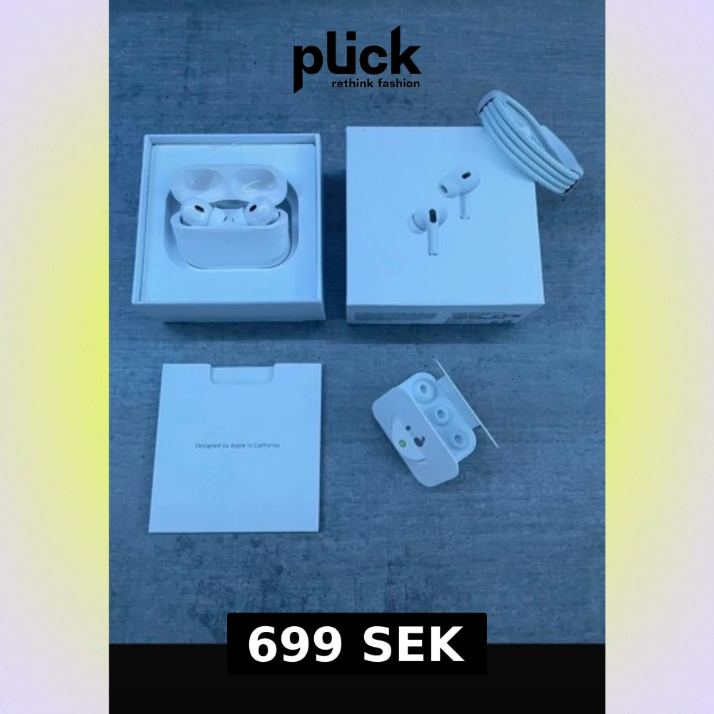 Säljer ett par AirPods Pro med originalförpackning, laddningskabel och manual. Hörlurarna och laddningsetuiet är i mycket gott skick utan synligt slitage. Aktiv brusreducering och trådlös laddning. Perfekt för musik, samtal och träning.