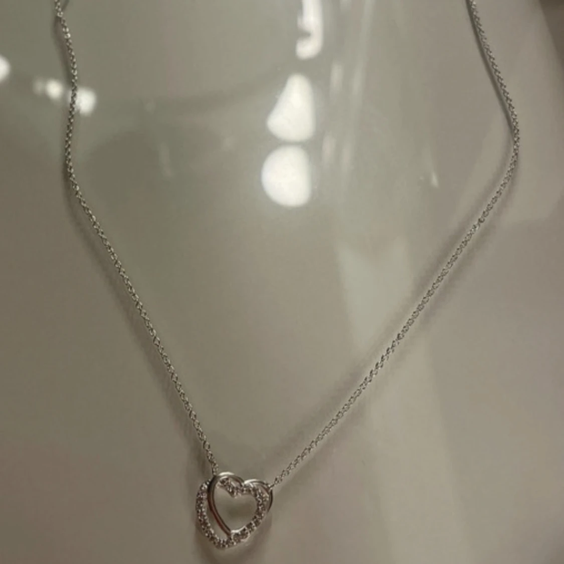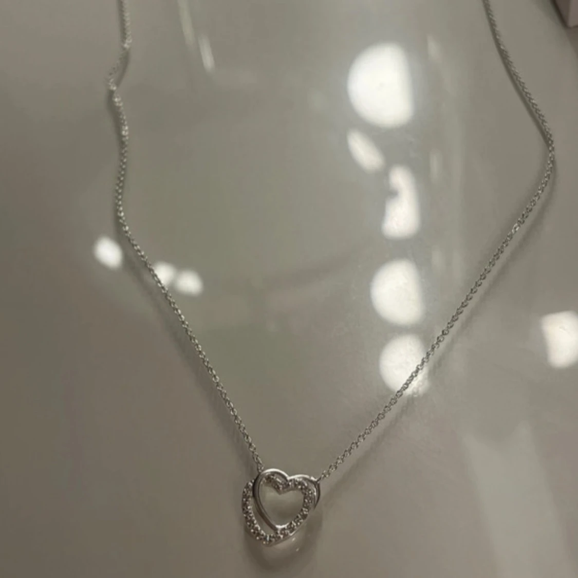 Halsband dubbel hjärtan. Äkta silver. Oanvänt och nytt