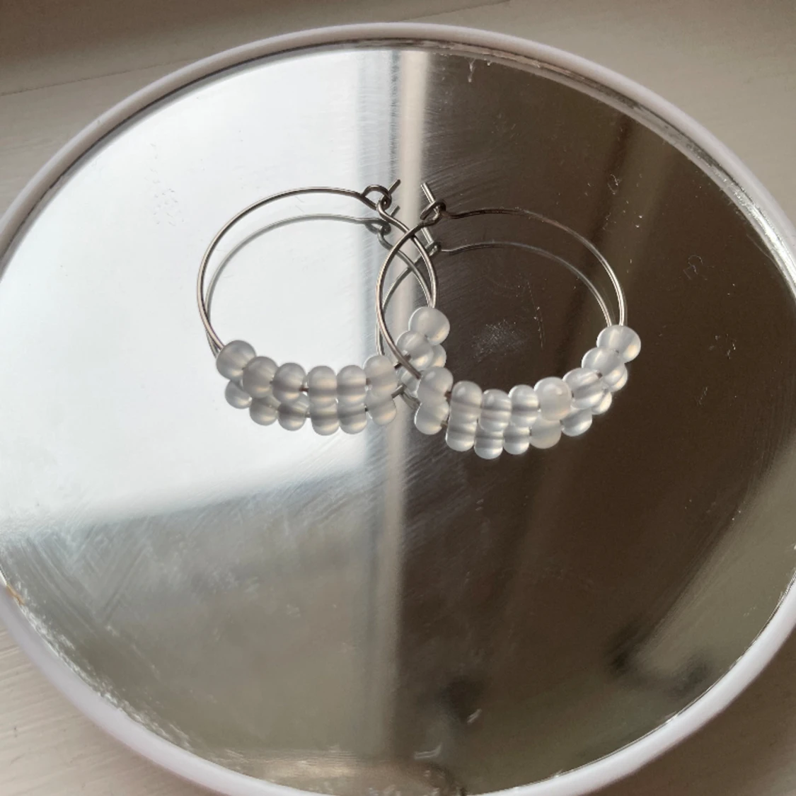 Har aldrig använt dom och de är helt nya, silvriga örhängen.