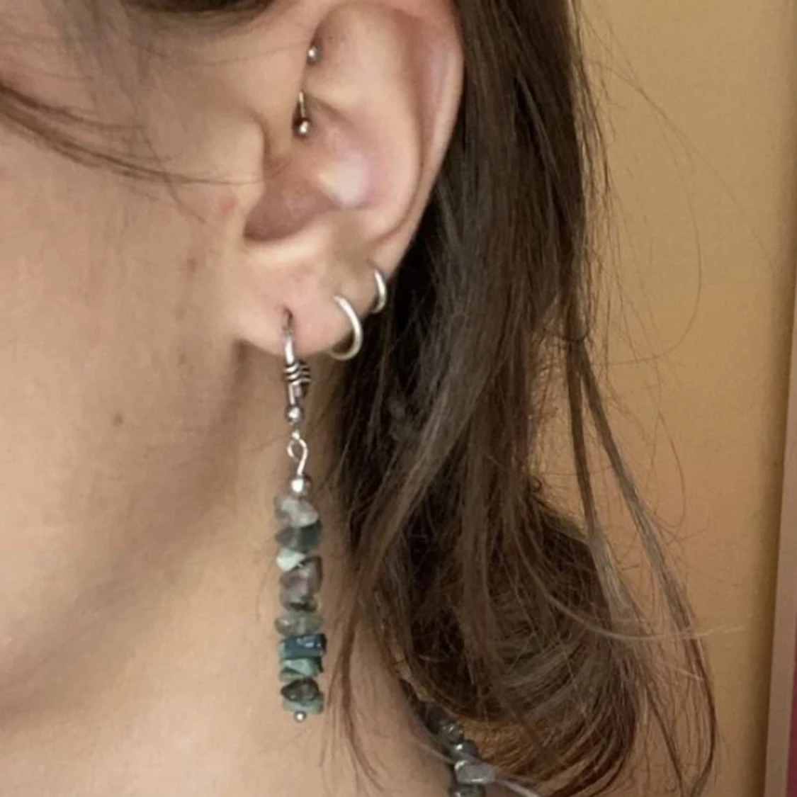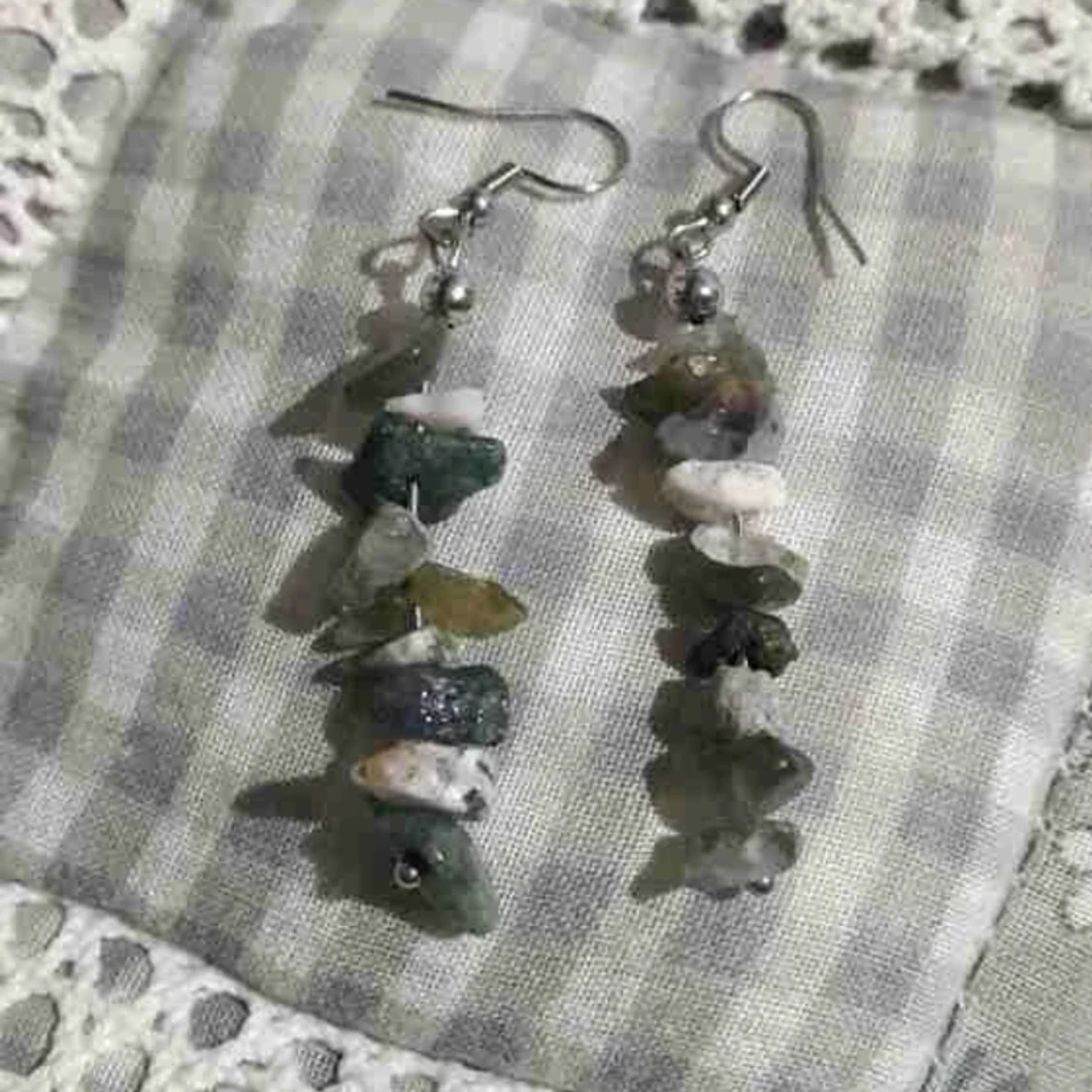 Ett par äkta kristal örhängen som har en blandning av Moss agate och jasper~ (Frakten är 15kr)