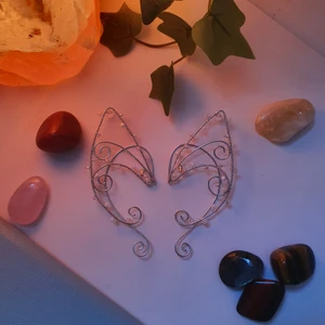 Här är ett par hemgjorda alvöron av ståltråd och pärlor. Det krävs inga hål utan det är bara att sätta på! Eftersom det är ståltråd går det att själv ändra passformen lite grann för att passa just dina öron😊 köparen står för frakten! Skriv om ni har frågor❤️