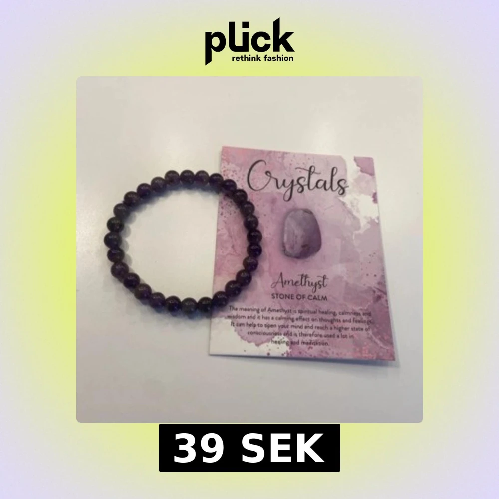 Tryck inte på köp nu!! Skriv privat vid intresse 😃😃 Superfint kristallarmband i ametist. Kort om ametist ingår :) Perfekt & ge bort som present till exempel:) Endast testat! Säljer då det ej kommer till användning!