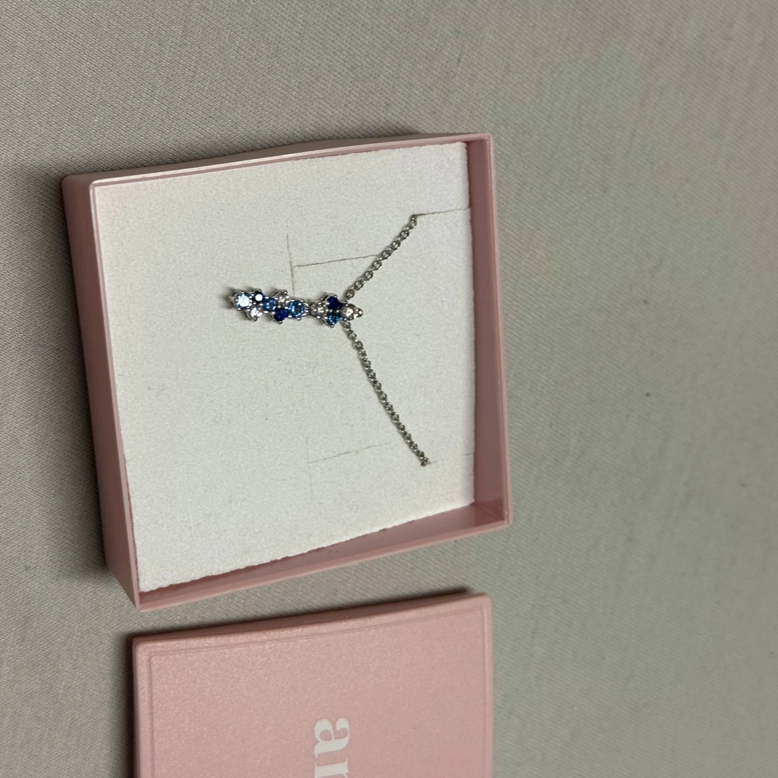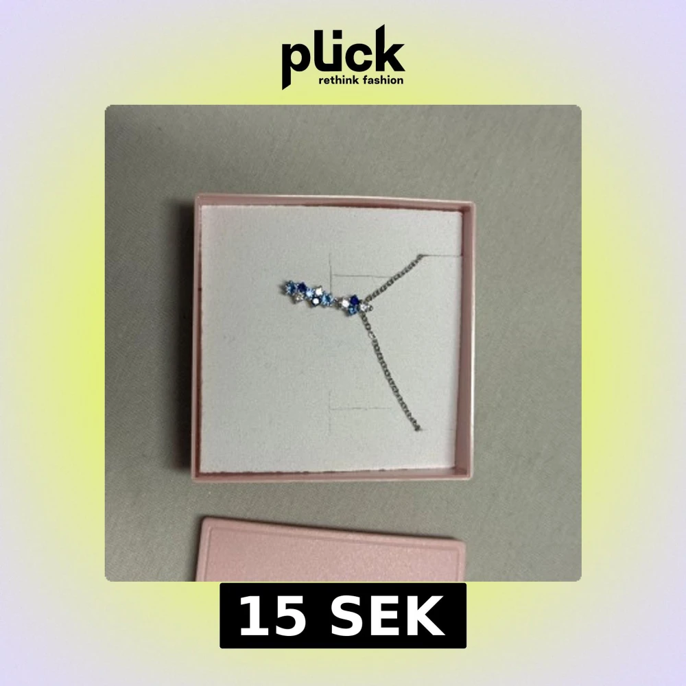 Snyggt halsband i silverfärg med små blommor av blå och vita stenar. Kedjan är tunn och elegant, perfekt för att ge en extra touch till din stil. Kommer i original ask från Amor.