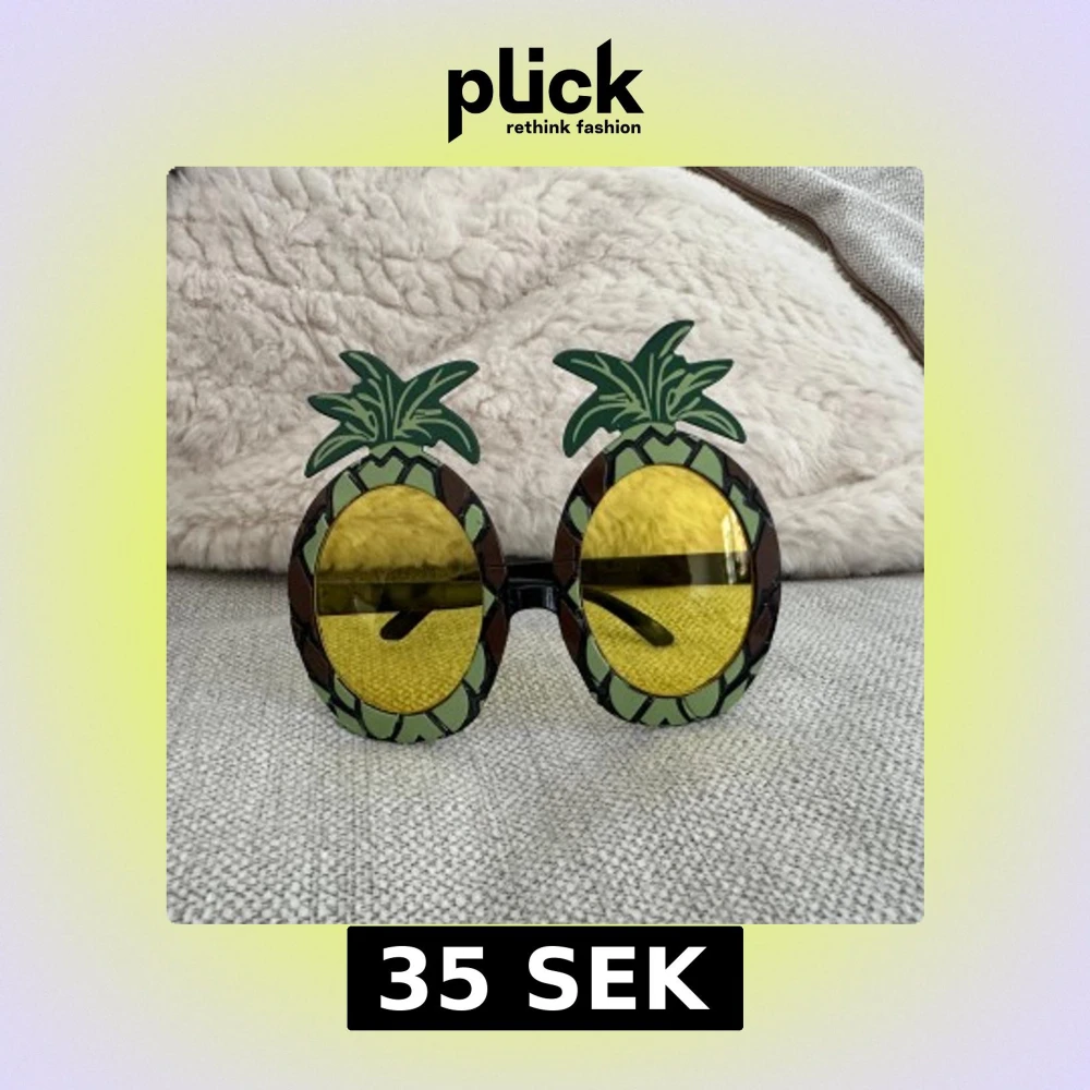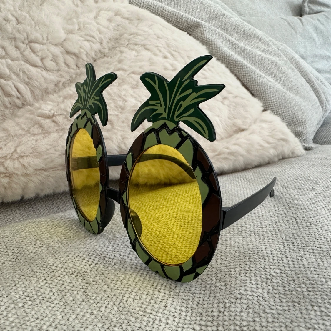 Roliga solglasögon i form av ananaser med gula linser och gröna detaljer. Perfekta för en somrig look eller temafest. Glasögonen har en unik design som garanterat drar blickarna till sig.