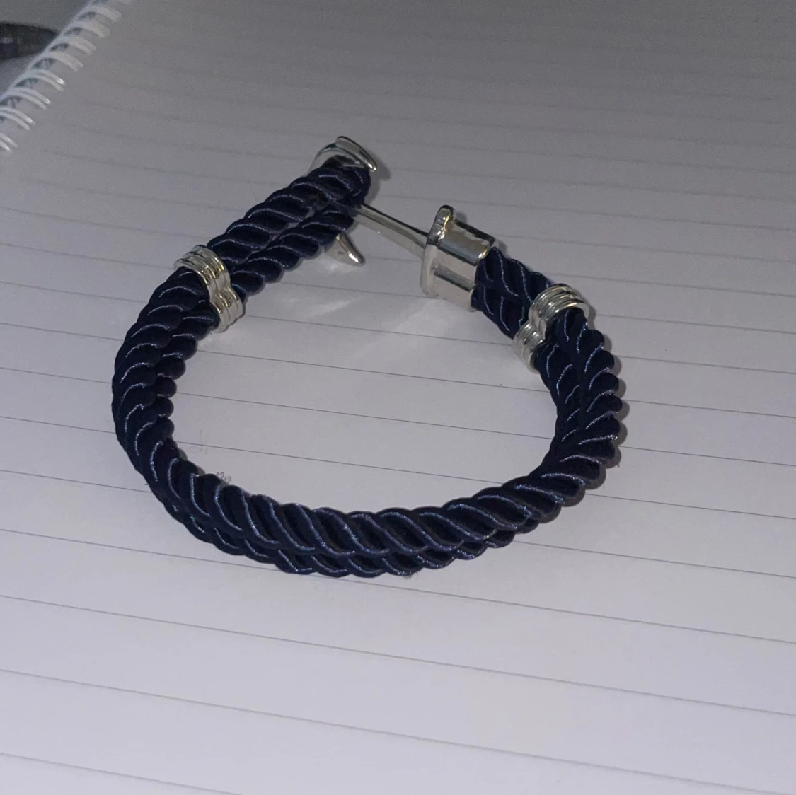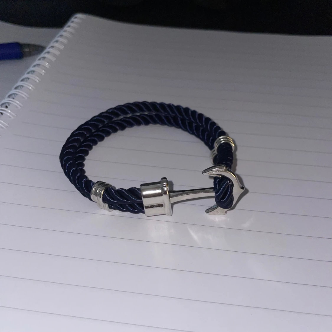 Snyggt armband med marinblått tvinnat rep och detaljer i silverfärgad metall. Stängs med ett coolt ankare som ger en nautisk vibe. Perfekt accessoar för dig som gillar stilrena och unika smycken.