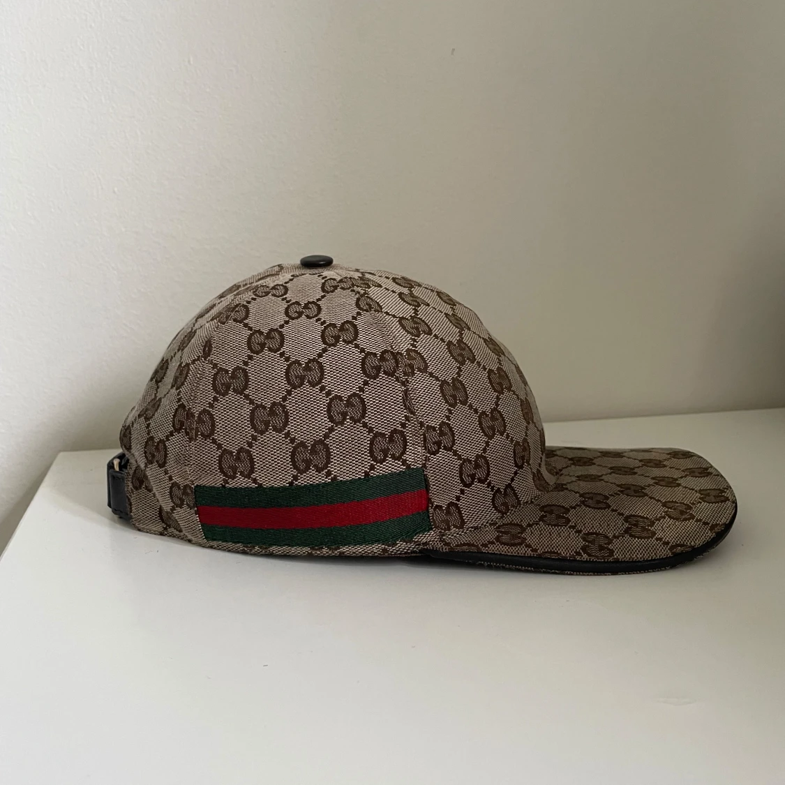 En fin Gucci keps perfekt nu inför sommaren med storlek M! Kepsen är i bra skick och har inga synliga skador. Kvitto eller box tillkommer inte men den är såklart äkta!