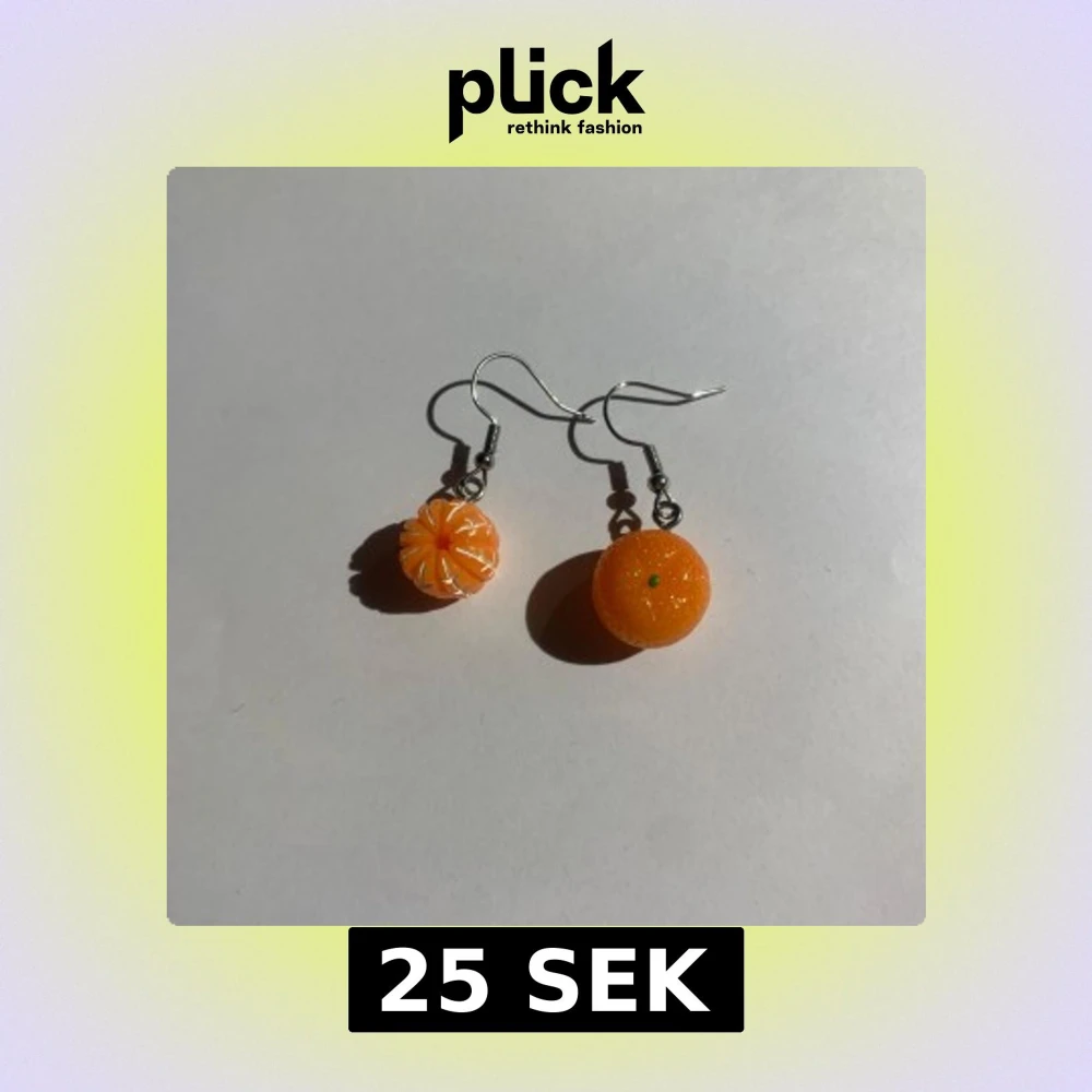 Säljer ett par unika örhängen formade som små apelsiner. Ena örhänget ser ut som en apelsinskiva och det andra som en hel apelsin. Perfekt för dig som gillar färgglada och lekfulla accessoarer! Jag kommer tyvärr inte ihpg var jag köpte dem ifrån