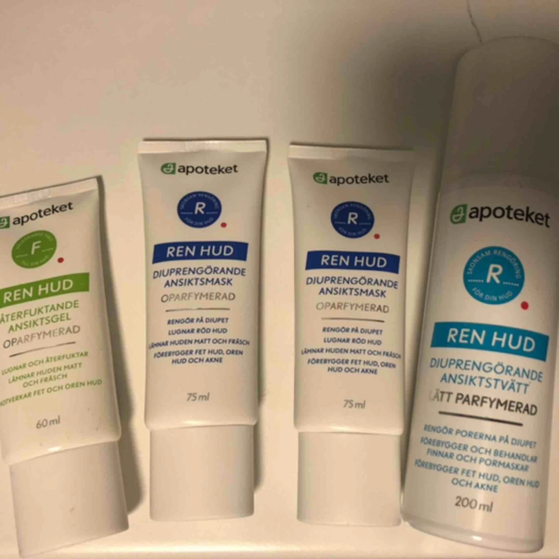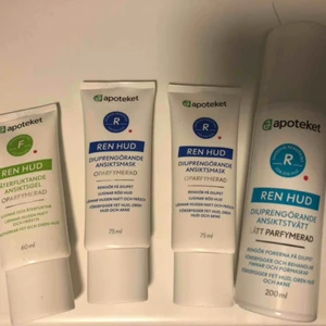 Lite hudvård! Allt är från apoteket. Allt är testat 1-2 ggr utom den ena ansiktsmasken som är oöppnad. Märkte ganska snabbt att de inte passade min hud så säljer! 🦋 allt för 150. En för 40 ❤️ frakt inkluderat om du köper alla💕
