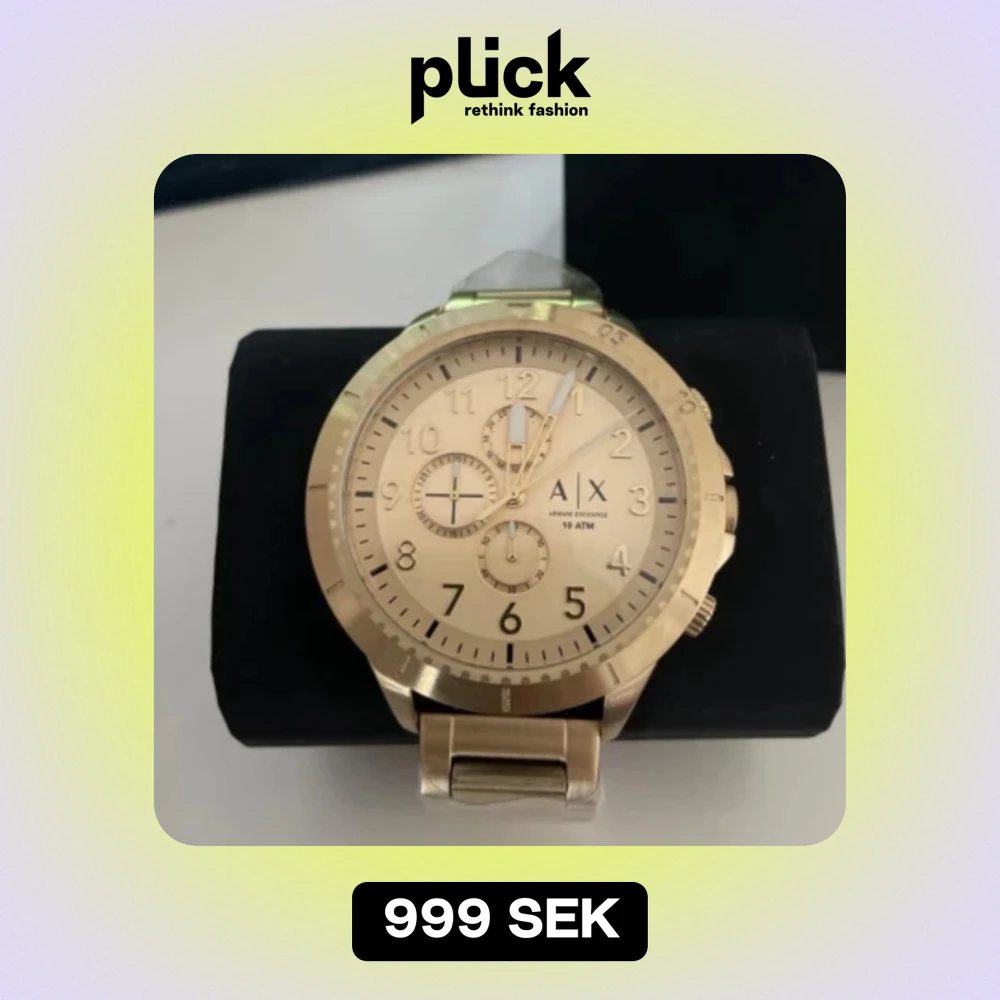 Hej! Jag säljer en helt ny klocka som jag fick som present. Jag har aldrig använt den eftersom jag personligen föredrar silverklockor framför guld. Klockan är fortfarande i orginalförpackning och har en liten lapp på sidan.