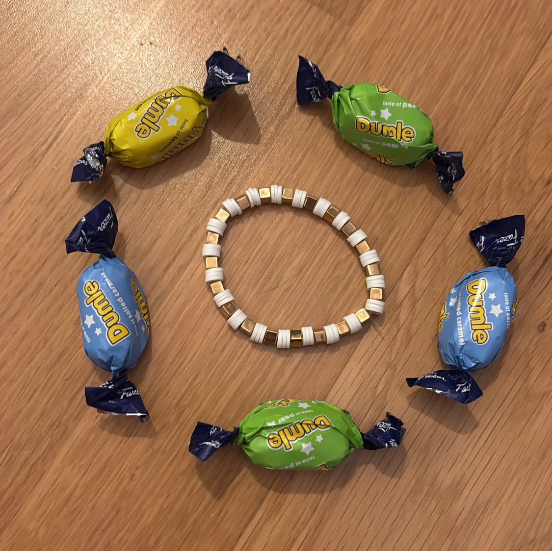 Handgjort armband, guldiga och vitt. đBra kvalitet! đ©·