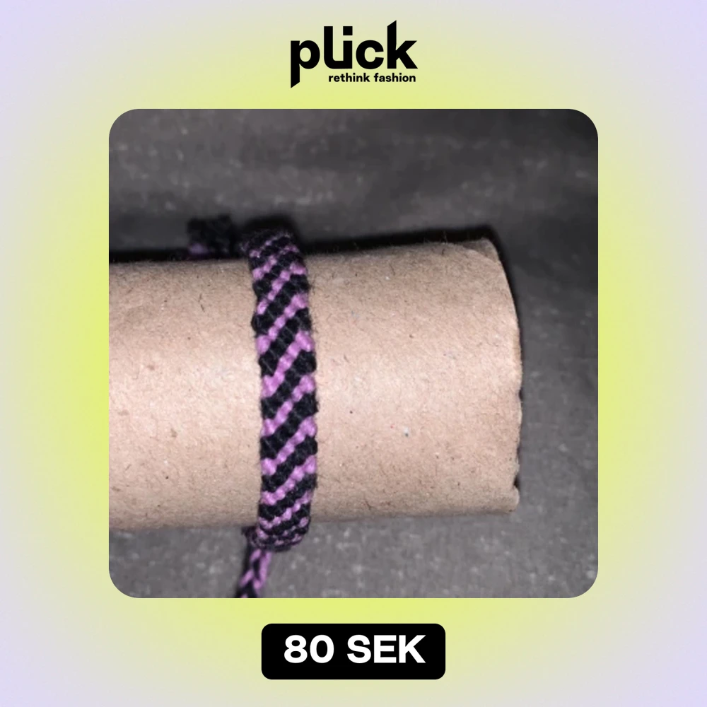 Handgjort armband Färg: lila och svart 14-20 cm Kan beställa i nästan vilken/vilka färger man vill,och storlek. ”Alla armband jag har gjort har tagit från en timme till en och en halv timme att göra”