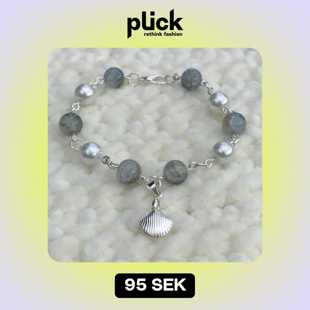 Vackert silver armband med blåa och vita glaspärlor.🐚