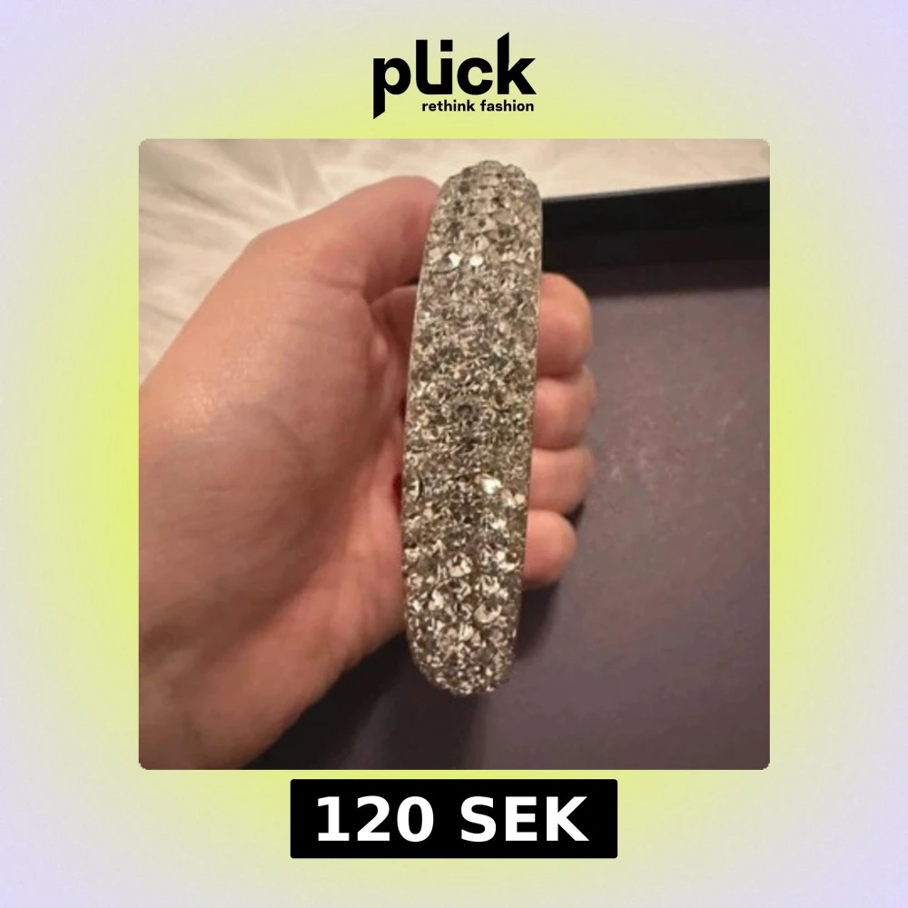 Snyggt och brett armband i silverfärgad med massor av glittrande stenar över hela ytan. Armbandet är stelt med gnistrande detaljer