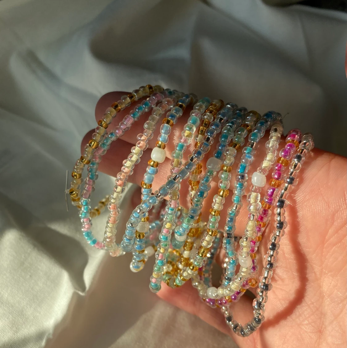 Superfina armband gjorda av elastisk tråd och glaspärlor. Priset varierar beroende på vilket armband de e. Priserna kommer vara mella. 20-35 kr + frakt. Kollar gärna in mina andra annonser då jag säljer andra armband med ‼️‼️
