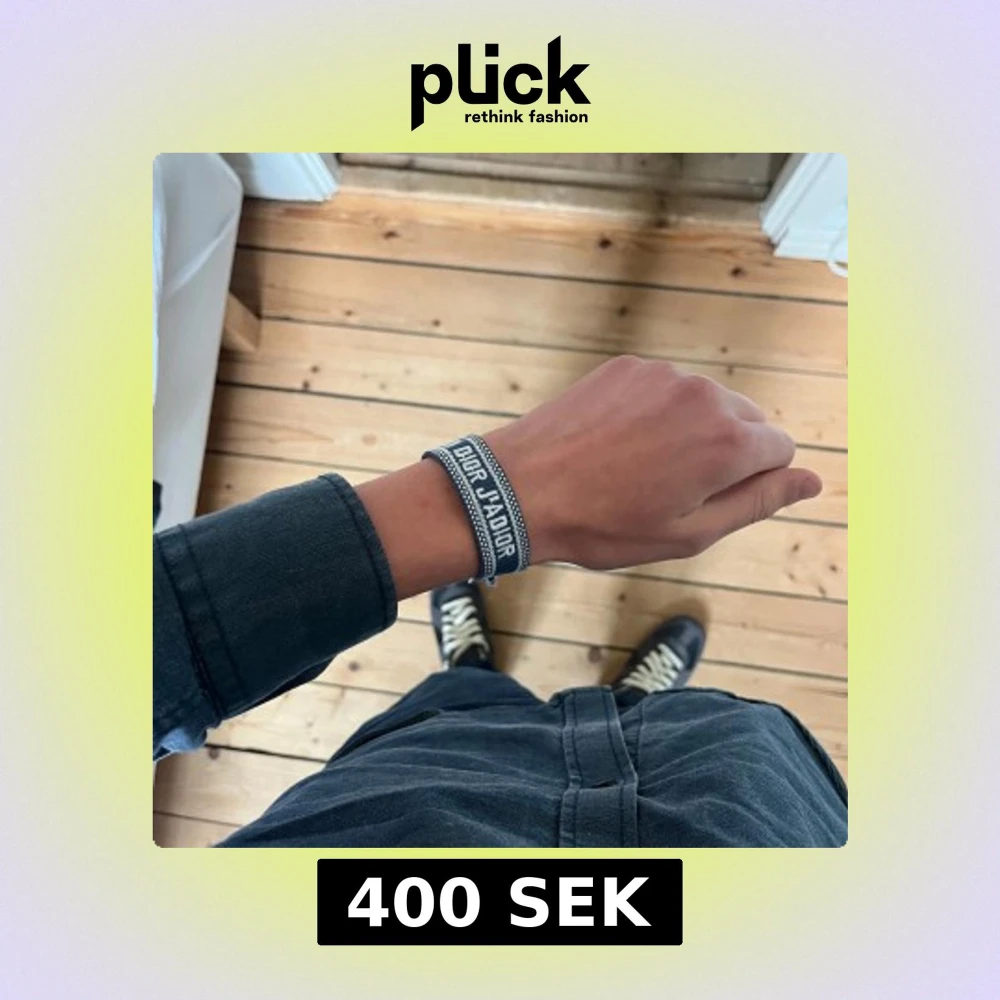 Säljer ett blått tygarmband från Dior med texten 'Christian Dior J'Adior' broderat i vitt. Armbandet har justerbar knytning med två stora tofsar i ändarna. Perfekt accessoar för att lyfta din outfit! Öppen för prisförslag!