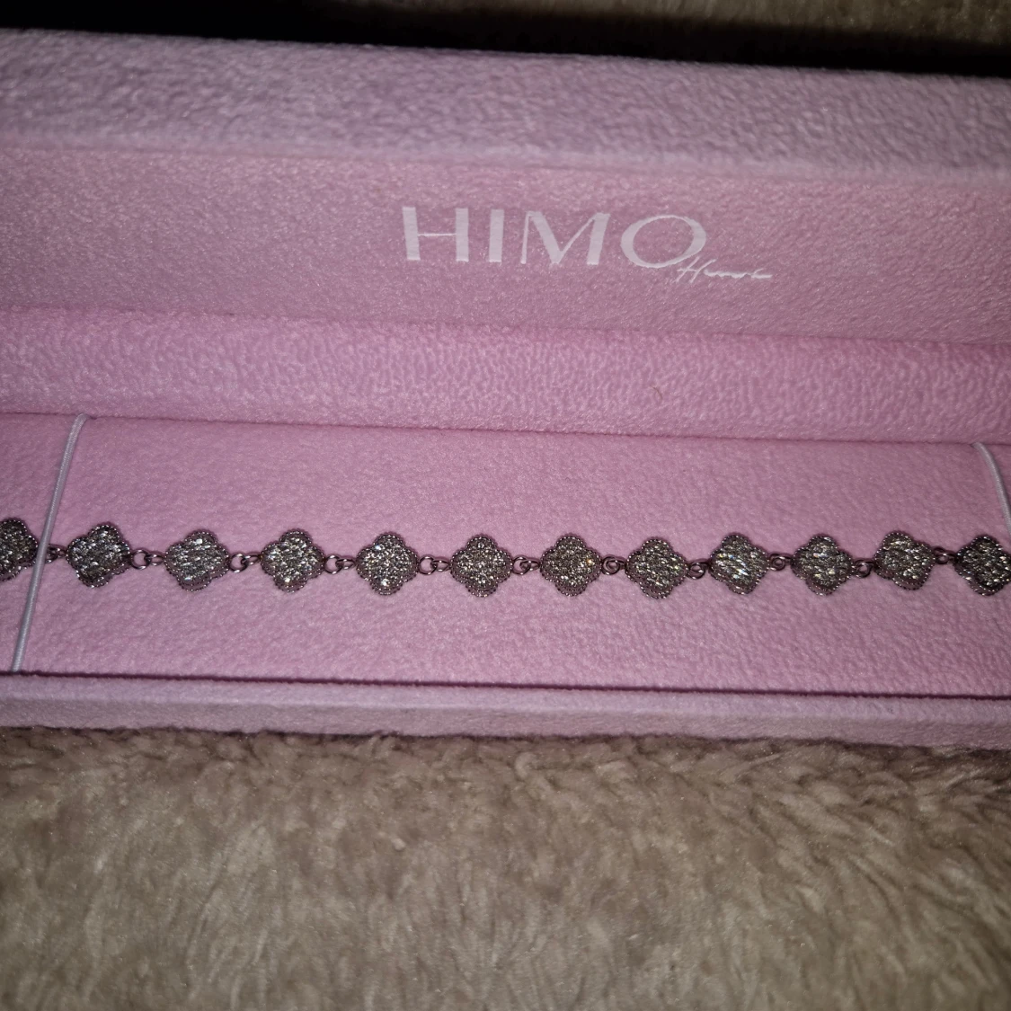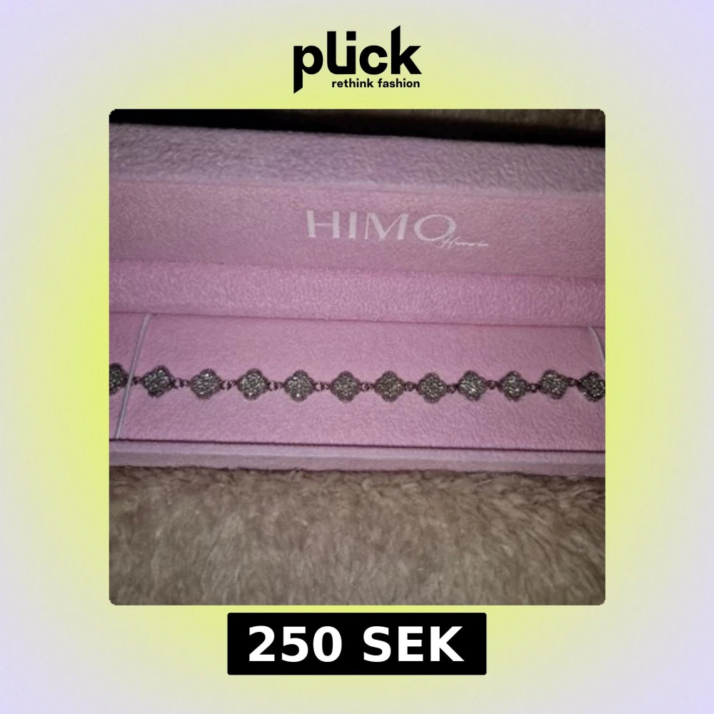 Säljer ett snyggt armband från HIMO Home. Det ena är silverfärgat med glittriga fyrklöverformade länkar, det andra har svarta fyrklöver i rad med silverdetaljer. Perfekta accessoarer för att lyfta din outfit. OBS asken ingår inte