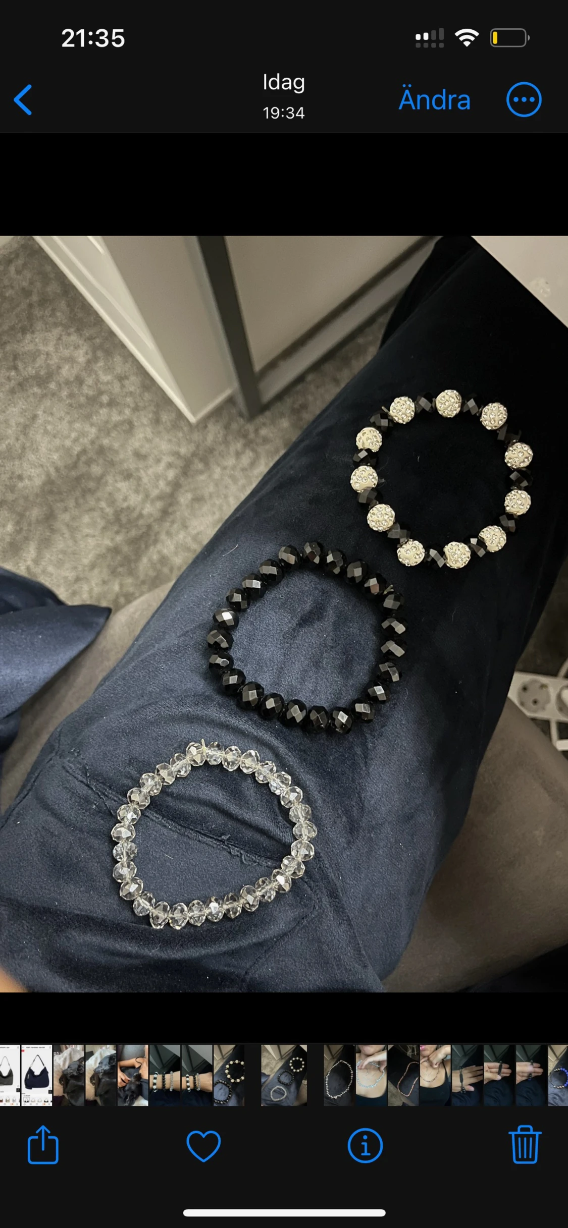 Jätte fina armband, priset varejerar mellan 10-20 kr. Köper du alla för du de för 90kr. Storleken på armanden passar för alla.