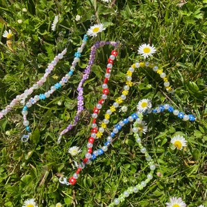Somriga och fina armband🌸 har i andra färger om så önskas. Gör även matchande halsband och ringar. Armbanden knäpps med ett lås, samt är tråden elastisk. 25kr för ringen. Postar oftast samma dag. 49kr/st för armbanden inkl frakt 🌸☺️🌻