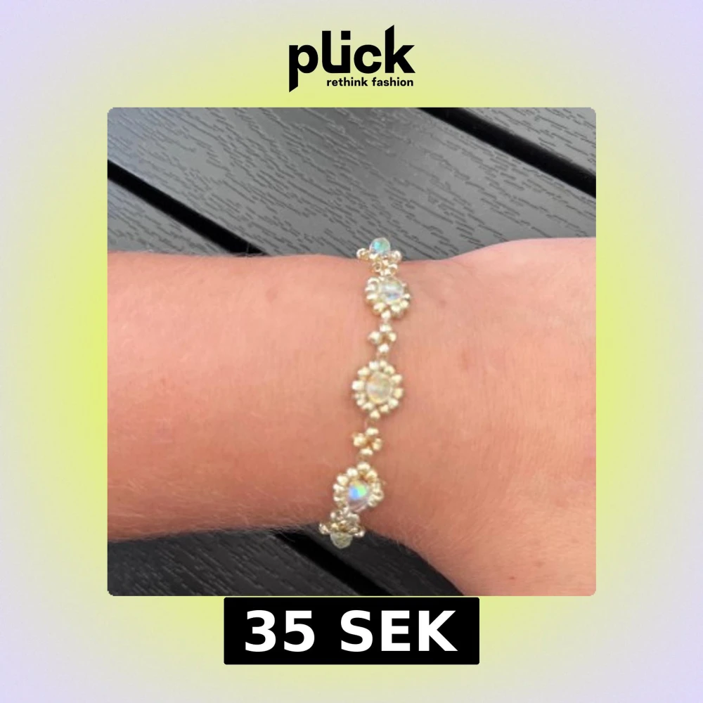 Superfint armband i guldton med runda, glittriga stenar som är infattade i små pärldetaljer. Stenarna skimrar i olika färger beroende på ljuset och ger ett lyxigt intryck. Perfekt accessoar för att lyfta din outfit med lite extra bling.