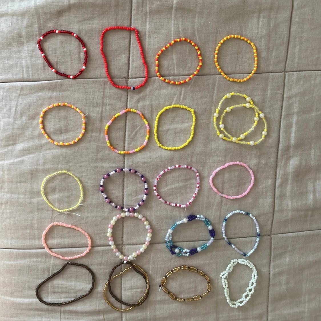 Handgjorda armband i flera färger! Både små och lite större pärlor. 70-85 kr/st! Det går att specialbeställa armband men gör armbanden vanligtvis ungefär 16-18 cm till tjej eller 21/22 cm i herrstorlek! Har även bokstavspärlor och det går att specialbeställa armband