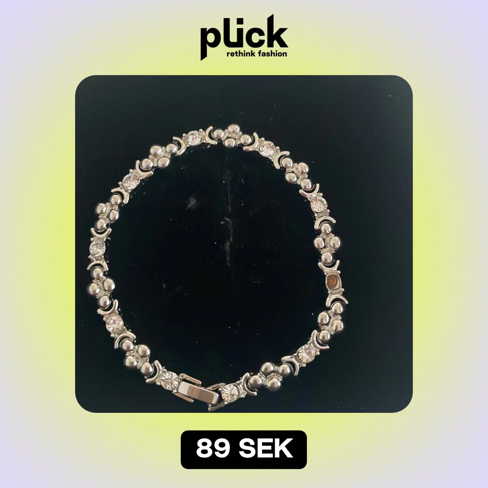 Snyggt silverfärgat armband med glittriga stenar som ger en elegant touch.En sten fattas. Perfekt för festliga tillfällen eller som en fin accessoar till vardags. Armbandet har en säker låsning och en stilren design som passar de flesta stilar.