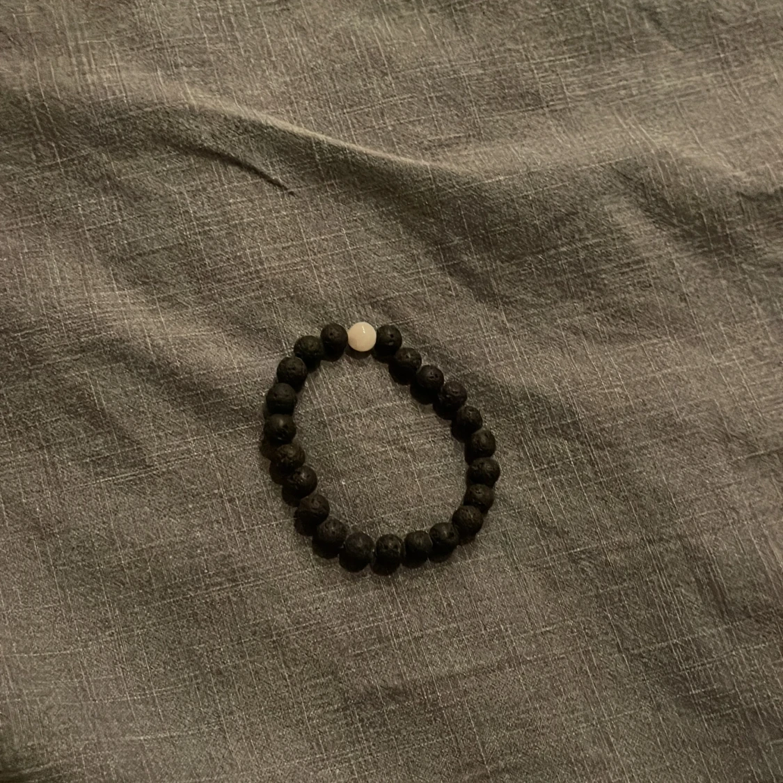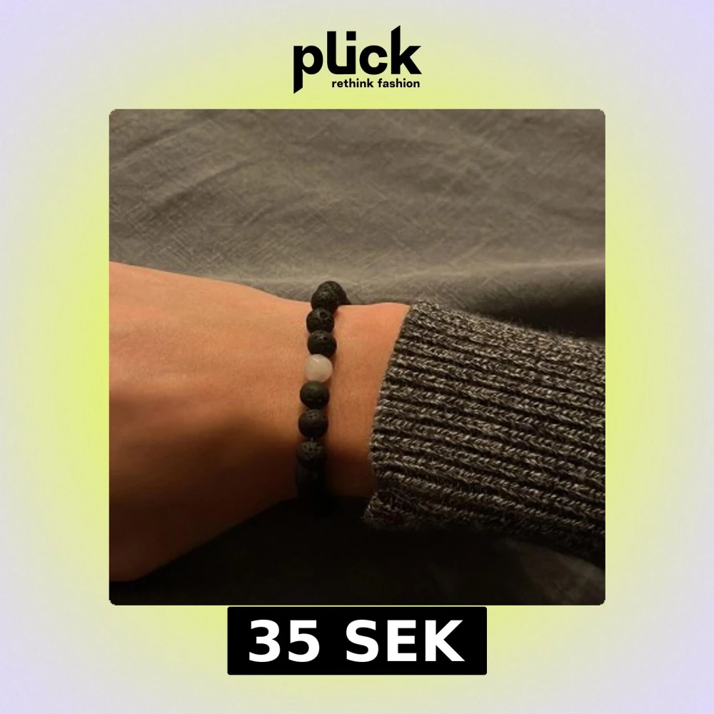 Snyggt armband med svarta pärlor och en vit/rosa pärla . Perfekt för att ge en stilren touch till din outfit. Elastiskt band för enkel passform.