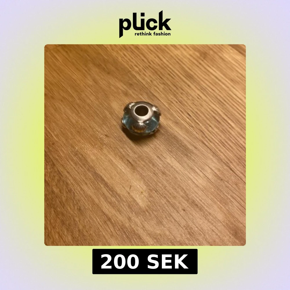 En Pandora berlock i ljusblå färg med snäck dekorationer.