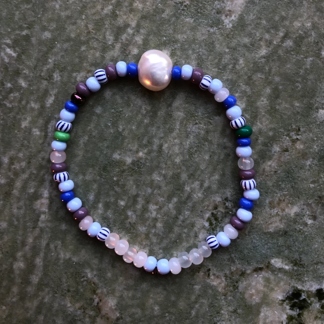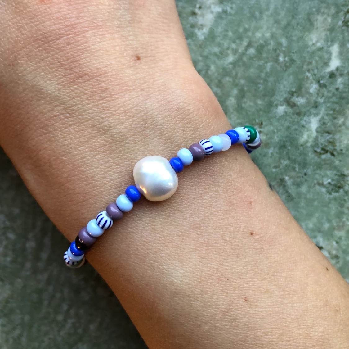 Handgjord pärlarmband med elastiskt band 🧡 Sötvattenpärla 🤭