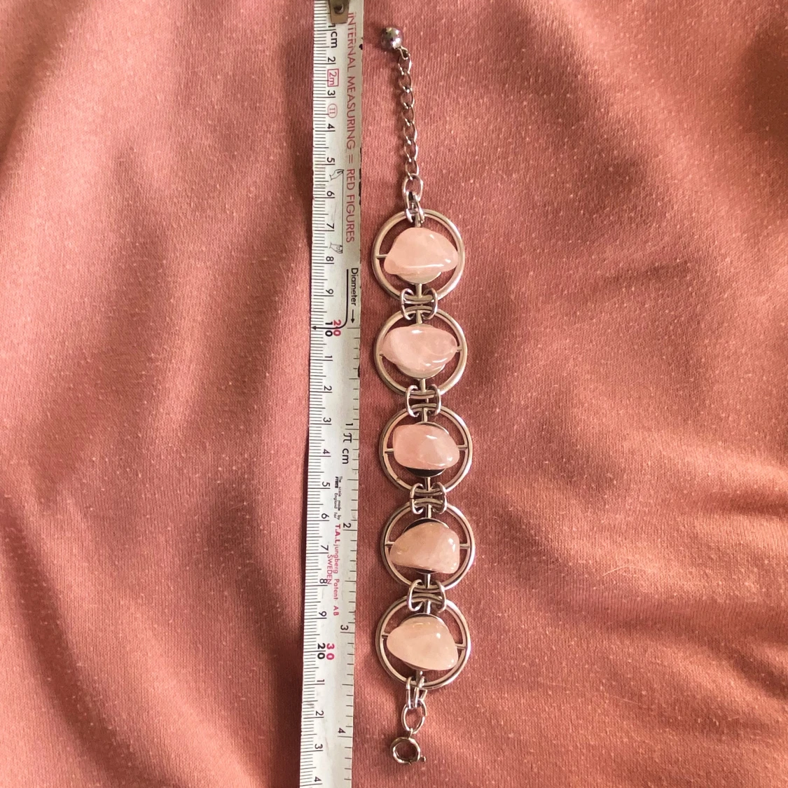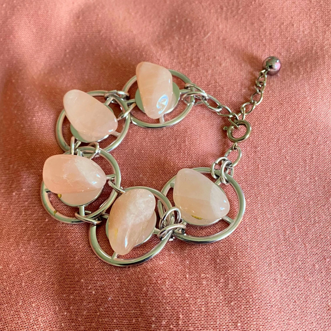Vackert armband med ljusrosa rosenkvarts Rosenkvarts initierar kärleken till oss själva. Den ger lugn och känslomässig förtröstan. Rosenkvartsen stimulerar kontakten med vårt inre barn, stödjer oskuldsfullhet, sårbarhet och tillit.