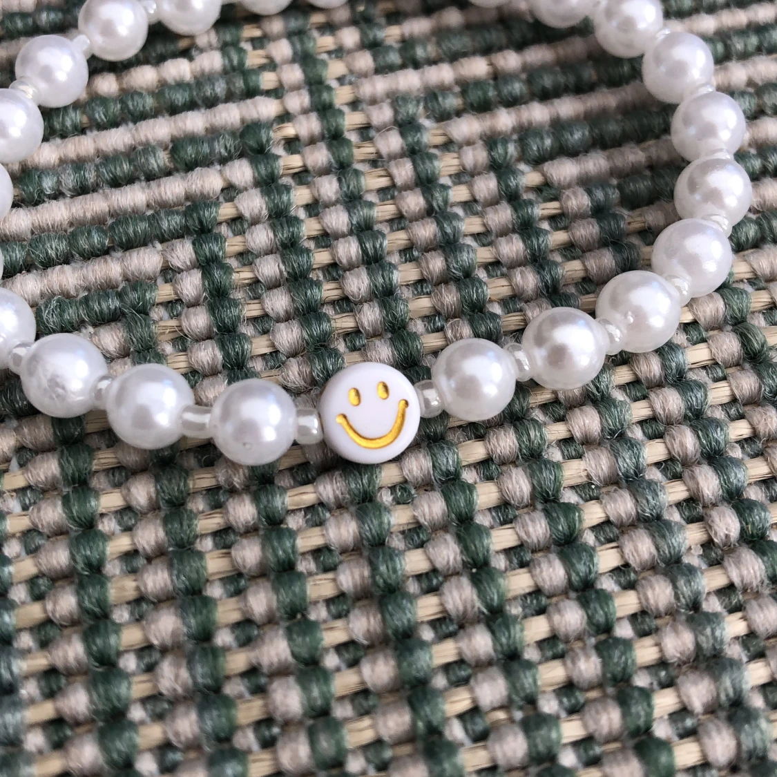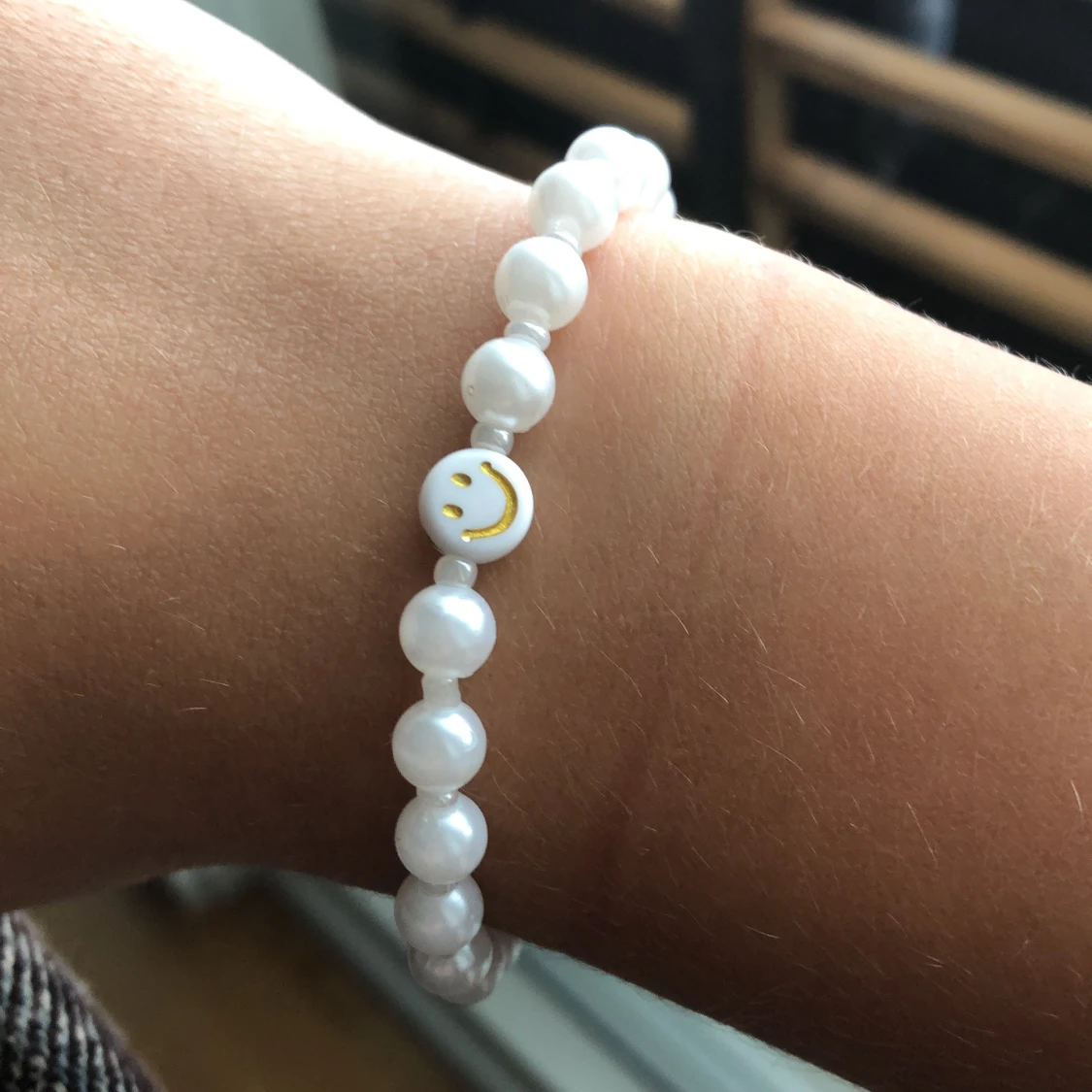 Jätte fint handgjort armband! smileyn finns i 3 andra olika färger än så länge, rosa,grön,guld och blå!
