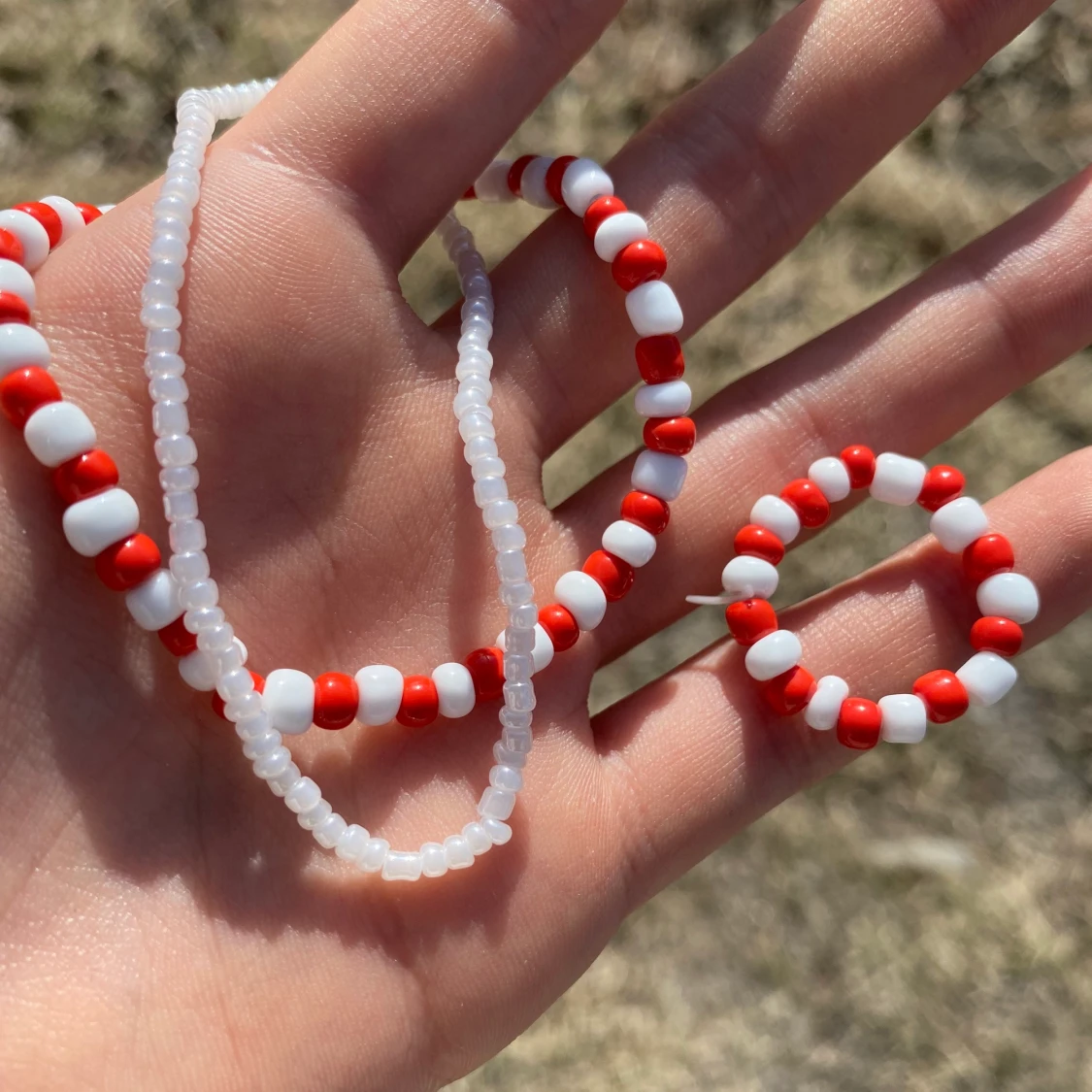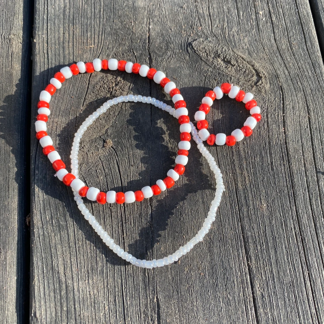 Ett fint set med armband + ring som jag har gjort själv!🌻Passar så bra till det mesta. Tråden är elastisk och passar därför alla. Hör av dig om du har mer frågor. Hela settet kostar 45 kr. De skickas med brevfrakt som kostar 13 kr.