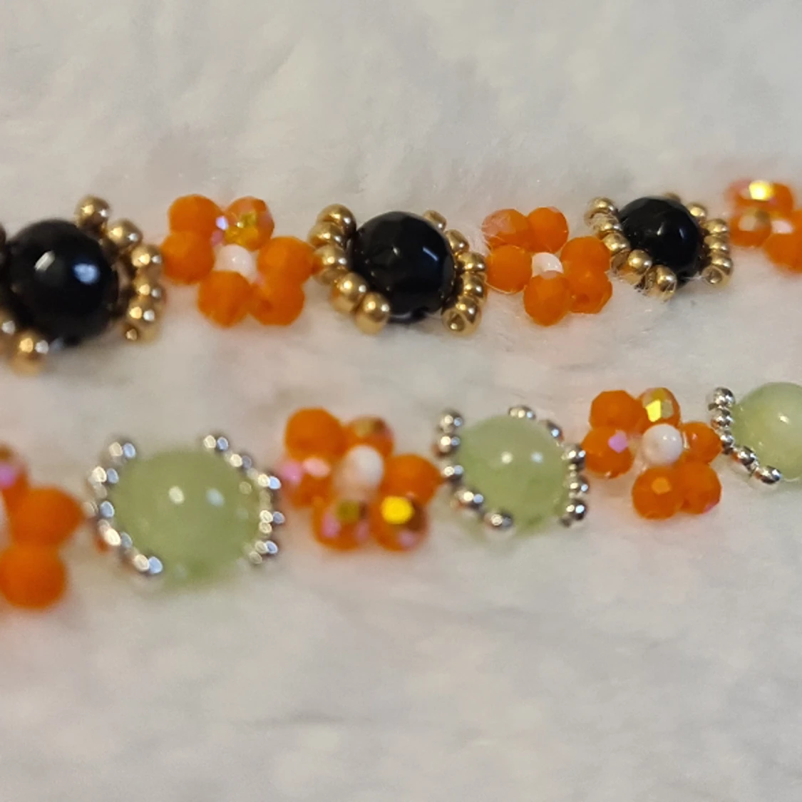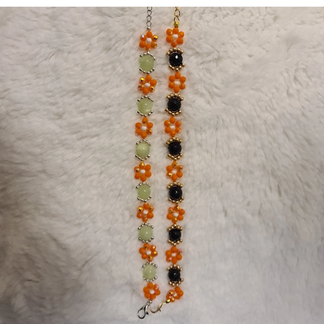 Arband gjorda på glaspärlor och halvädelelstenar. Helt nya. Säljes billigt. Priset gäller en styck. Skriv vilket arband du vill ha :)
