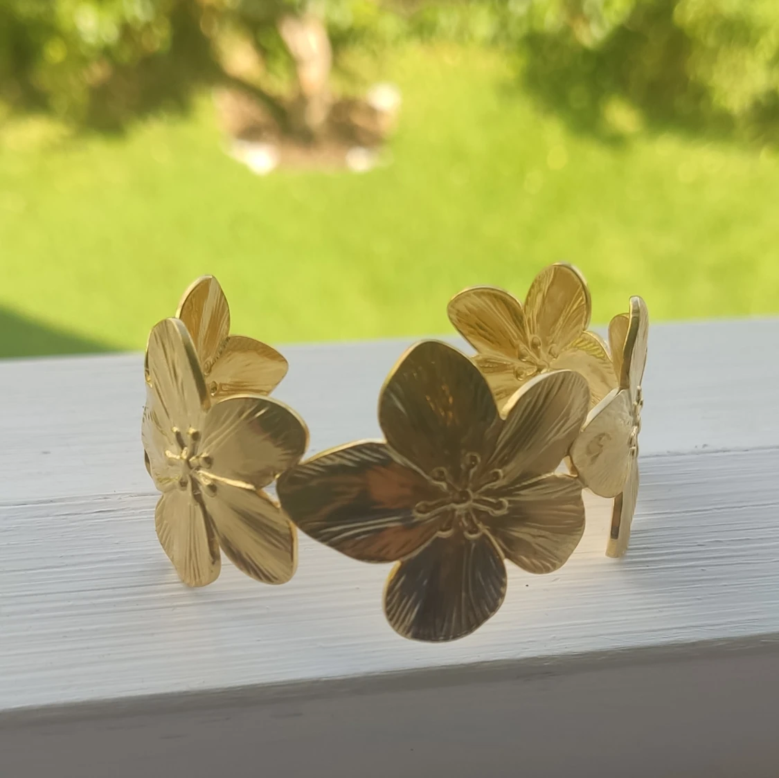 jättefint armband med blommor. storleken går att justera. säljer då jag har för mycket smycken. Helt oanvänd, bara testad