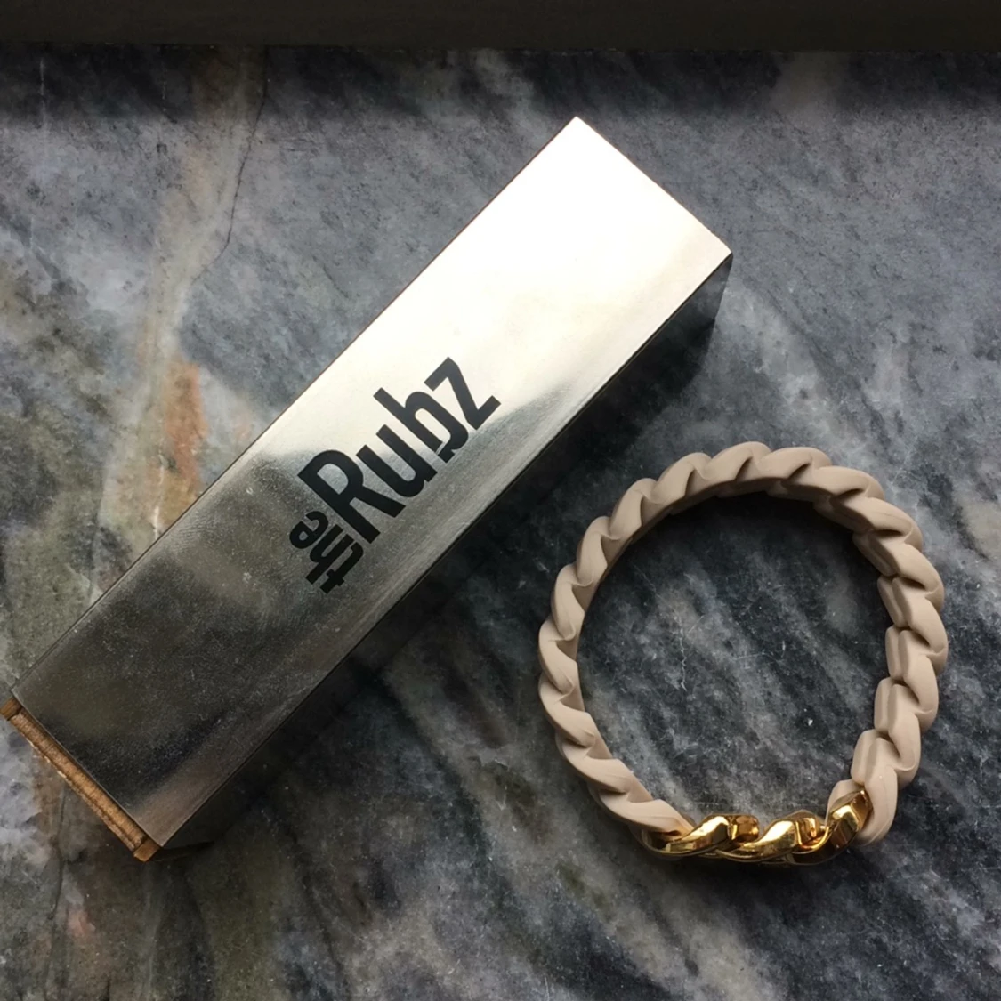Helt oanvänt armband från The Rubz. Beige/guldfärgad. Nypris: 490kr Frakt tillkommer!
