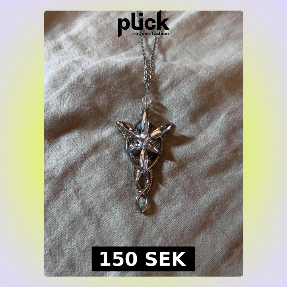 Silver-plated stainless steel necklace inspired by Arwen Undómiel’s Evenstar. 50 cm rust-free chain with a 5 × 3 cm detailed pendant — luminous, ethereal, and iconic