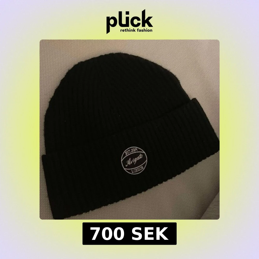 Snygg svart ribbad mössa från Axel Arigato med en stilren broderad logga framtill. Perfekt för att hålla värmen under kyliga dagar. Använd få tal gånger, säljs inte längre på marknaden. Helt ny.