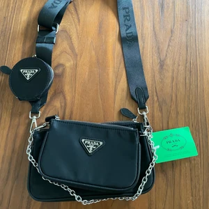 En helt oanvänd FAKE Prada väska. Jätte fin och bra kvalitet för att vara fake😊 kan ta bort den lilla väskan och ”plånboken” och bära dem separat om man vill🥰