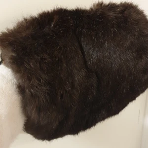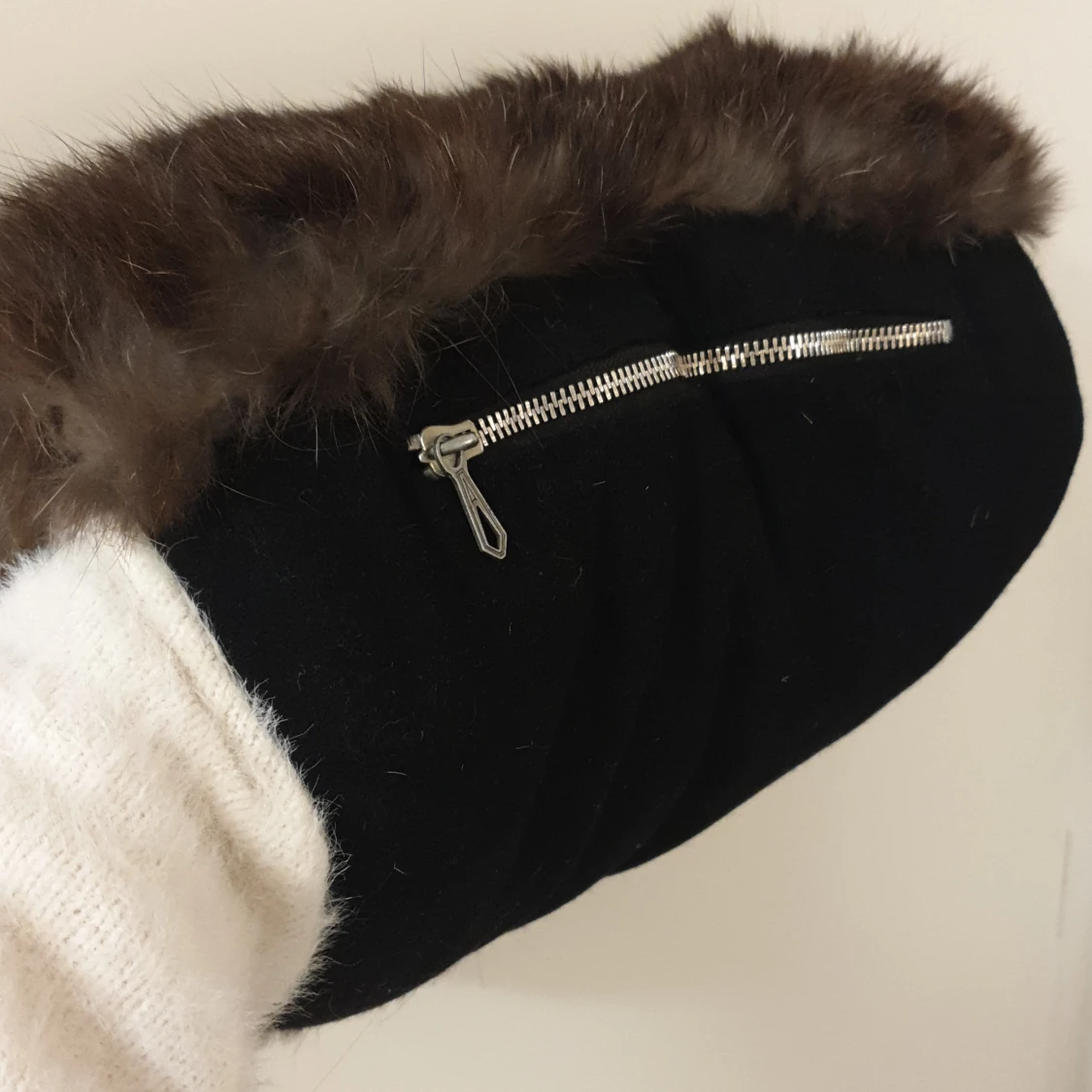 Retro päls muff att stoppa händerna i liten ficka med dragkjedja på baksidan