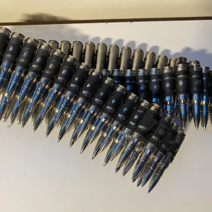 Patronbälte silver med kulor. Bra skick, 108 cm lång men man kan ta bort/köpta till patroner för att den ska passa. Orginalpris: 1200kr från Blue fox.