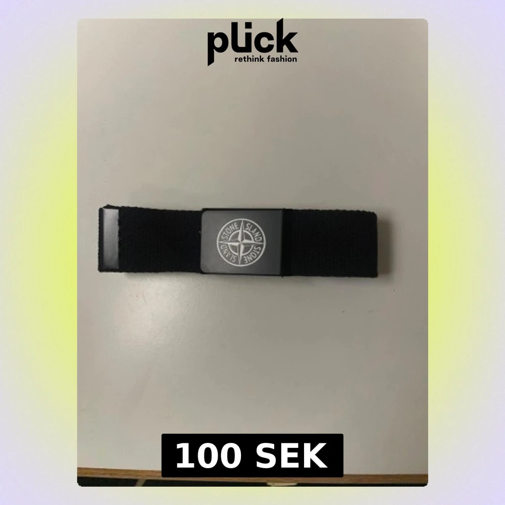 Säljer ett svart bälte från Stone Island med klassisk logotyp på metallspännet. Bältet är gjort i ett slitstarkt syntetmaterial och har en enkel, stilren design som passar till de flesta outfits. Perfekt accessoar för dig som gillar streetwear.