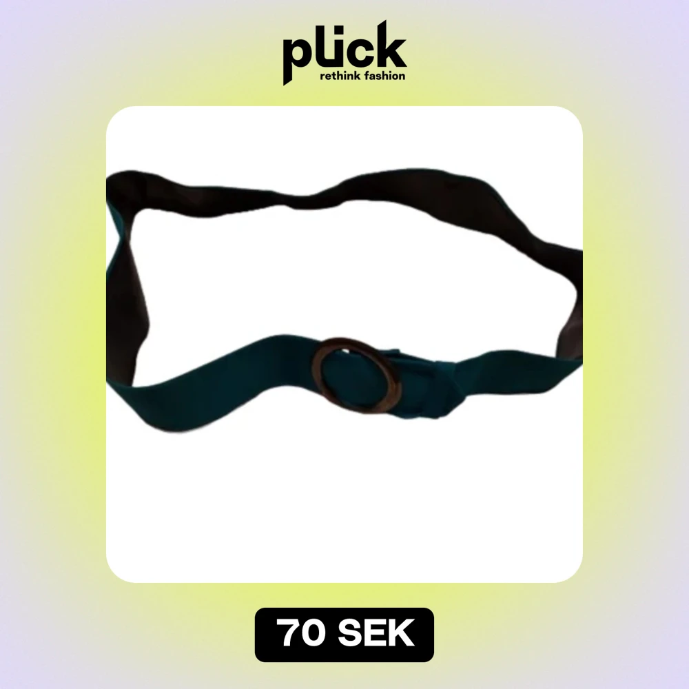 Till en vuxen dam, turkost textilbälte med bronsdetaljer. I begagnat skick, men ändå fint och inte särskild sliten.