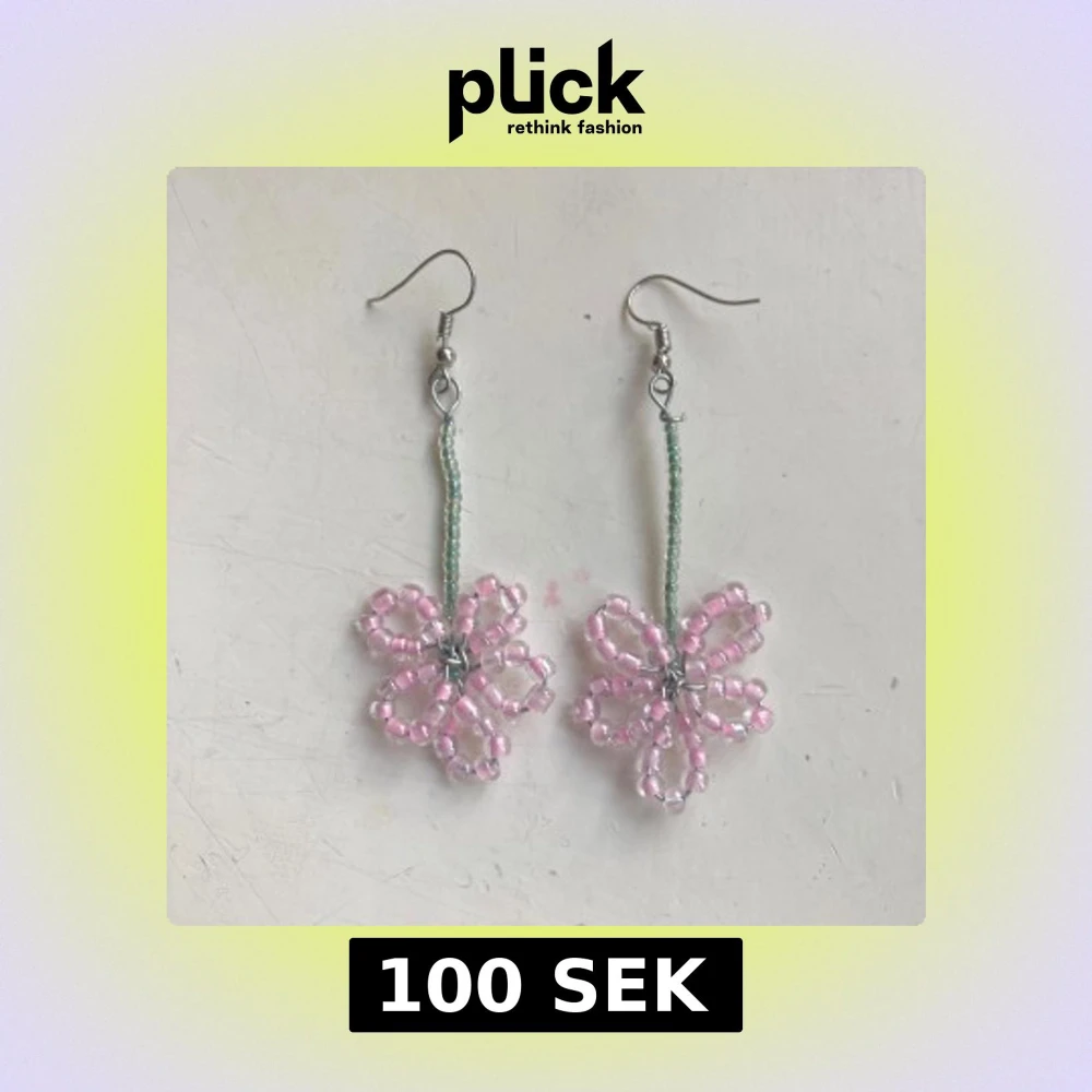 Handgjorda örhängen formade som blommor med rosa pärlor. Så söta!🌸🌸
