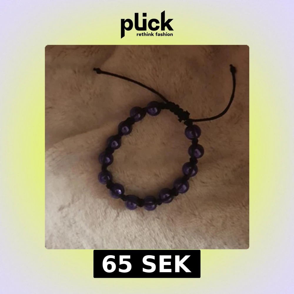 Snyggt handgjort armband med svarta snören och glansiga lila pärlor. Justerbar knytning så det passar de flesta handleder. Perfekt accessoar för dig som vill sticka ut med lite färg och coola detaljer.