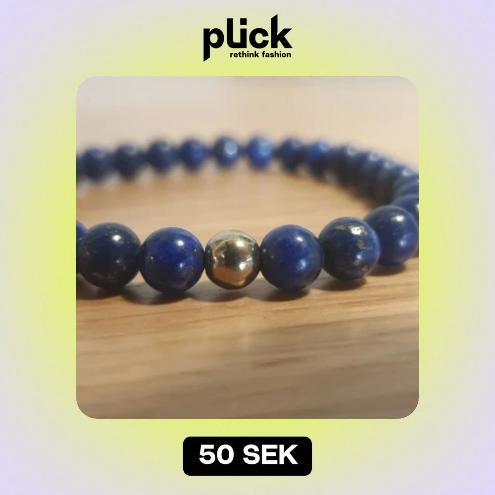 No size, nyskick, aldrig använd. Mörkblåa stenkulor i varierande nyanser med silvrig eller guldig detalj