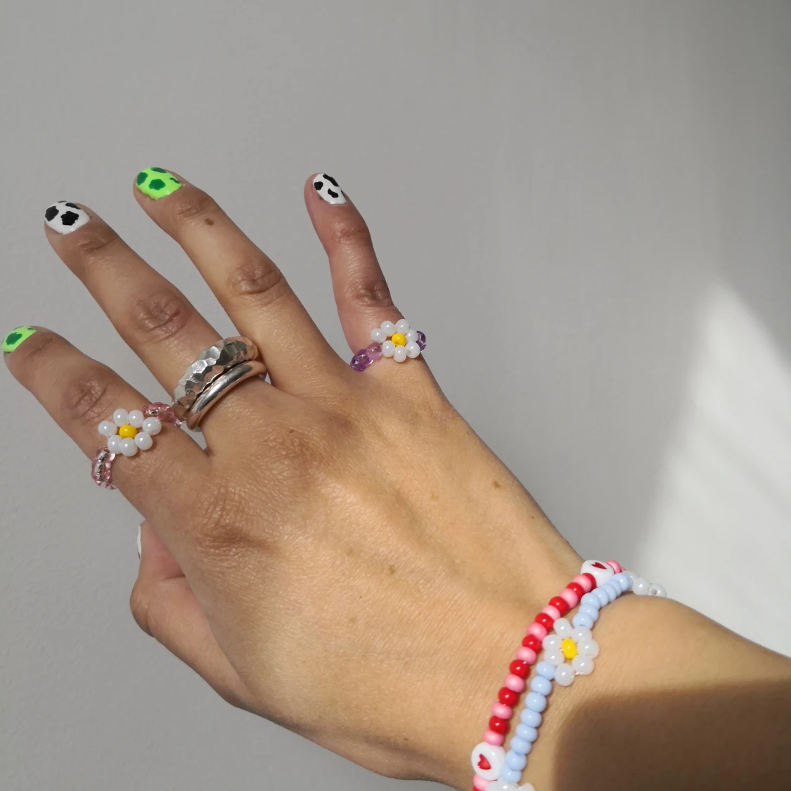 Armband med blommor eller andra motiv, i olika färger! 🌼🌺🌸💮 Armband 75 kr plus 12 kr frakt, ring 50 kr plus 12 kr frakt