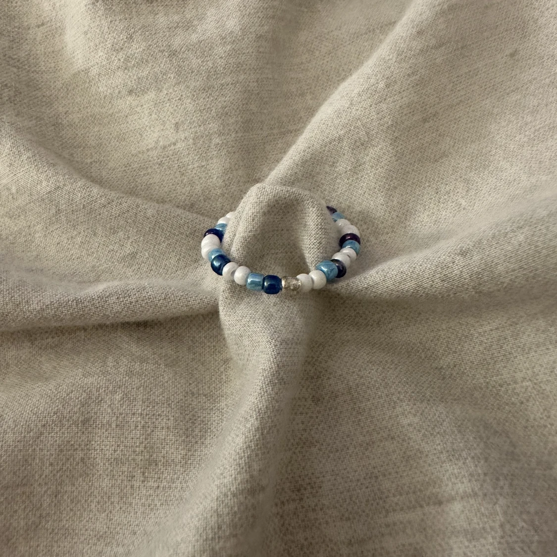 Blåvit pärlring. Går även att beställa efter eget önskemål