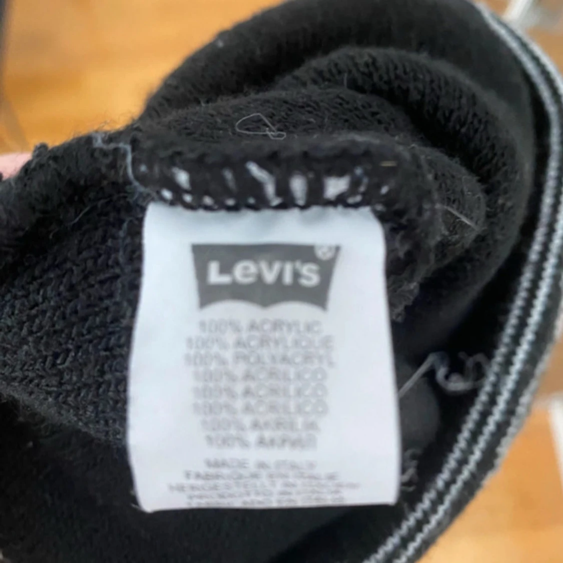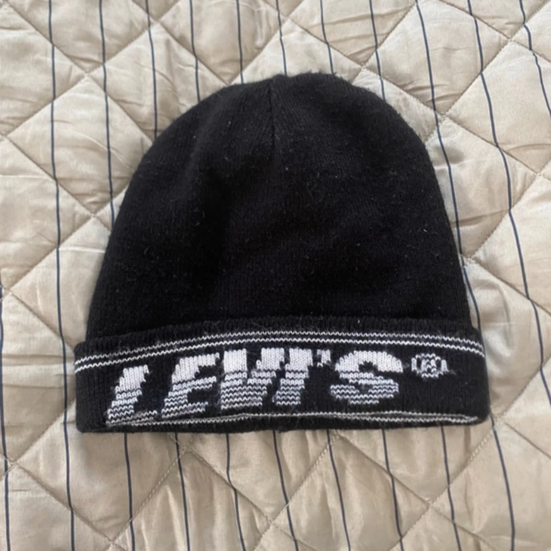 Snygg svart mössa från Levi's med vit logga och randdetalj. Perfekt för att hålla värmen med stil. Tillverkad i 100% akryl.